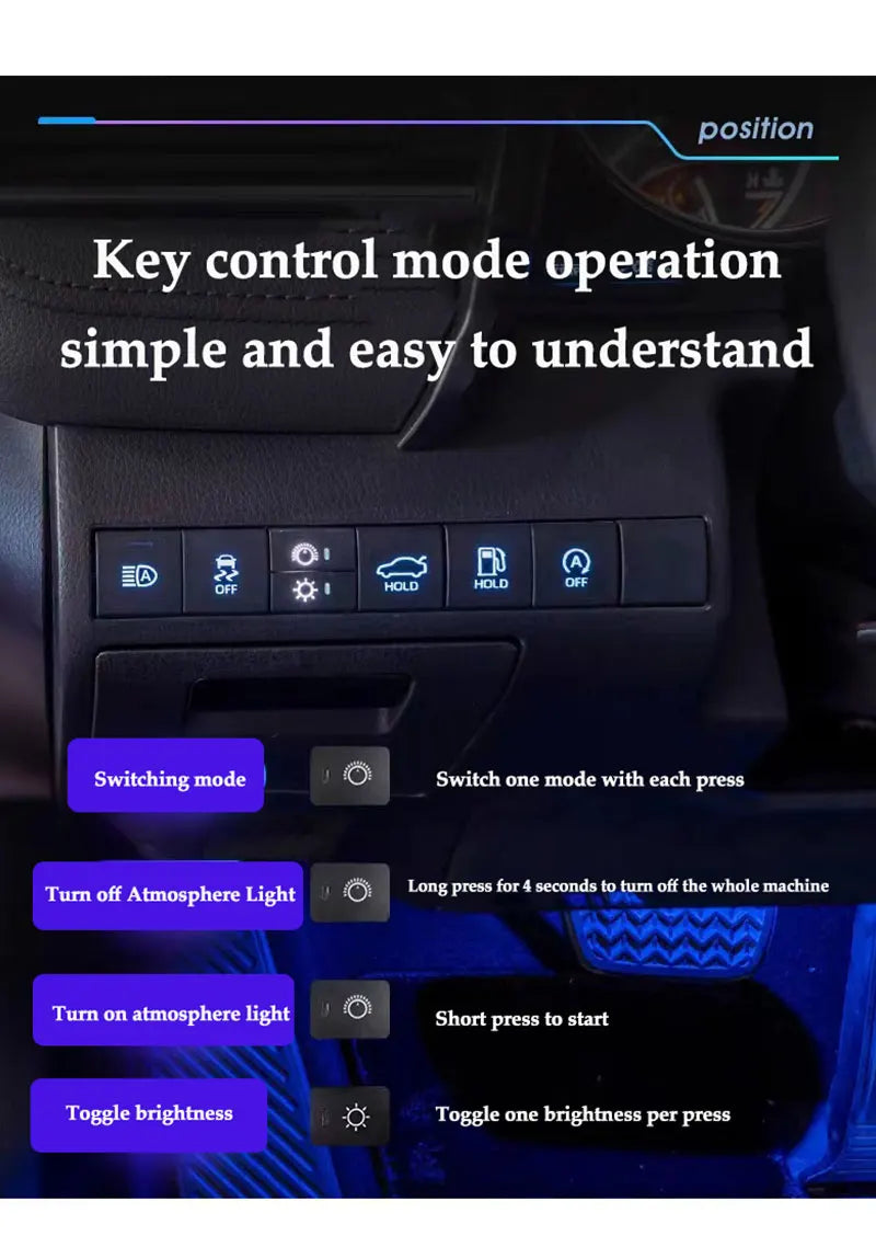 Upgrade your driving experience with our ambient lighting kit, precisely molded for Toyota Camry. Designed to enhance both style and comfort, this plug-and-play system brings a modern, luxurious vibe to your interior.